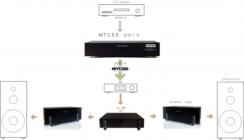 お手持ちの SPDIF接続されている CDトランスポート と DACの間にシステムアップすることで サーボやディスプレイスキャンなど CDトランスポート内で汚されたクロックを断ち切り、新に10MHzマスタークロックで動作するTCSSの世界を堪能することが可能です。