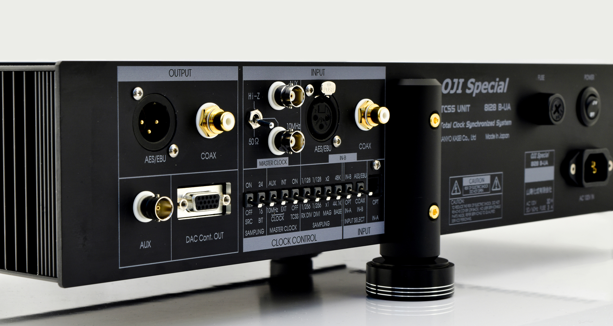 8028B ーUA (TCSS Unit) と 8128B DDAC UNITの接続10MHzクロック同期された超高性能DAコンバータにアップグレード可能です。